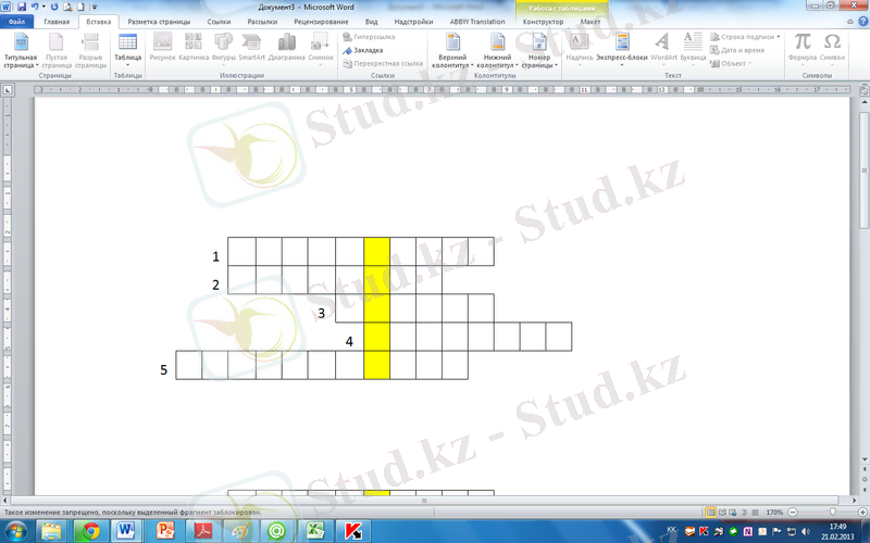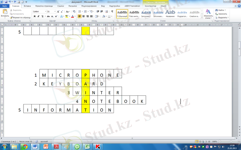 Сөзжұмбақ арқылы жаңа сабақтың тақырыбын ашу