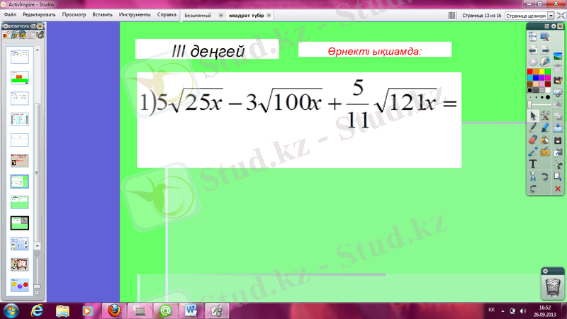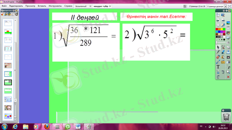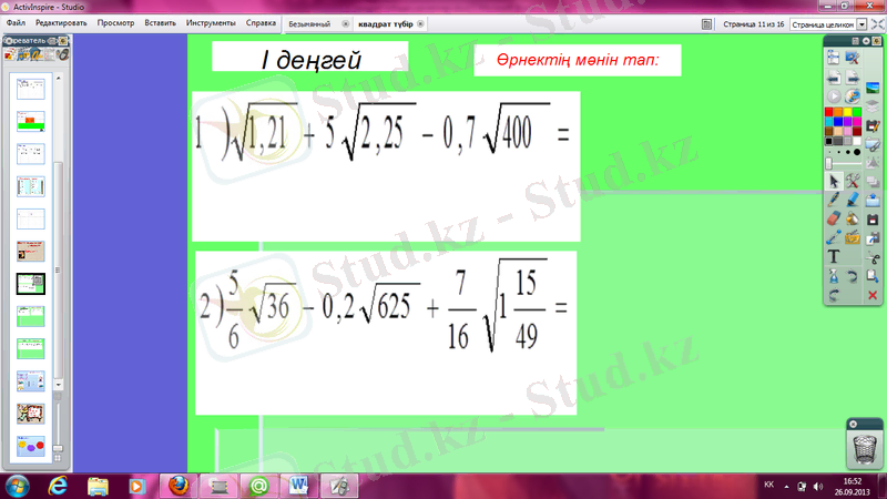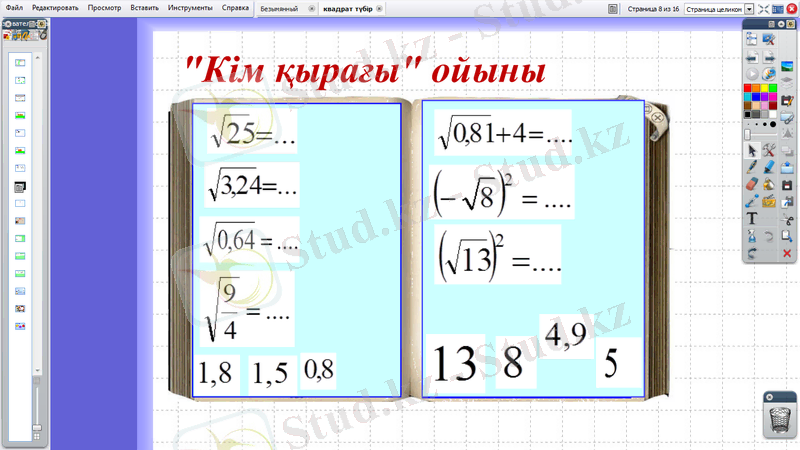 3. Квадрат түбірдің қасиеттеріне берілген есептерді шешу.