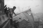 Рейхстагтың үстіне өздерінің жеңіс туын тігеді.