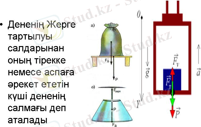 - Дененің салмағы мен денеге әрекет ететін ауырлық күшінің арасындағы айырмашылақ неде?