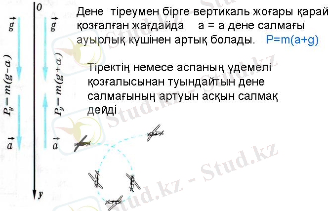 - Салмақсыздық - дененің салмағы нолге тең болатын дененің күйіP=m(g - a)
