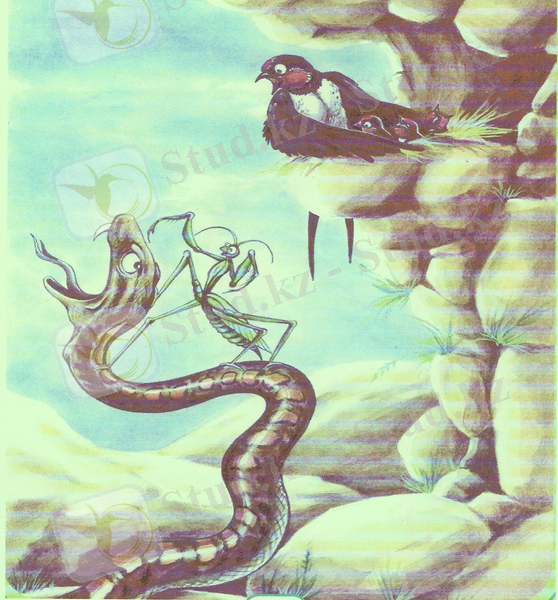 Мына ағаштың басына қараторғай ұя салып жұмыртқалап балапан басып шығарған екен. Осы балапандарды жеуге жылан өрмелеп келеді. Тапқышбек бізге балапандарға көмектесіңдерші деп өтініп тұр.
