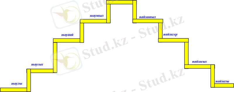 Оқушылар түбір сөзге сын есімнің жұрнақтарын жалғау арқылы жаңа сөз жасап, баспалдақпен көтеріледі.