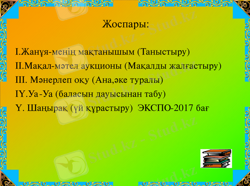 Енді жоспарымен таныстырып өтейін: