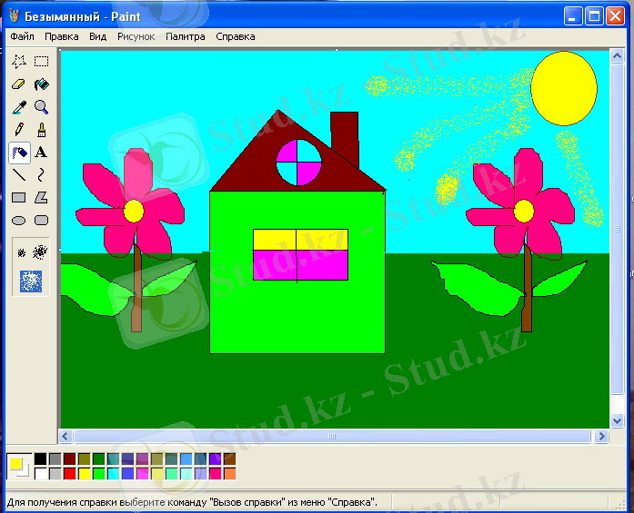 Тапсырма : Құралдар тақтасын пайдалана отырып әдемі үйдің суретін салып безендіру . Үйдің жаңына гүлдің суретін салып оны көшіріп көбейту.
