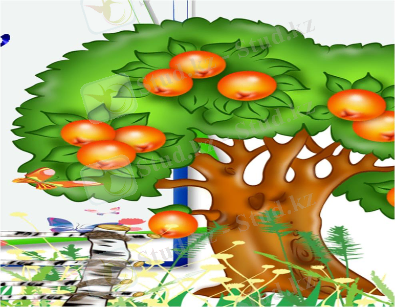 - Шарты:Алма ағашынан әр тұлға өз жемістерін теріп алып, жемістерде жазылған тапсырманы орындаса жеміс сол адамға.