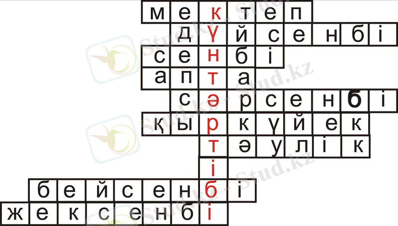 Осы сөздердің аудармасын тор көздерге толтырып шыққанда, оқушылар өздері тігінен қандай сөз шыққанын табу керек .