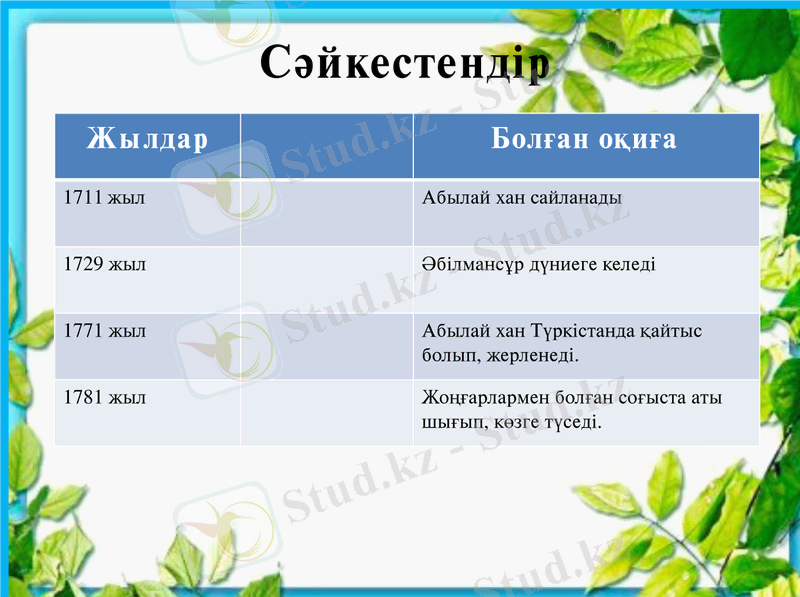 1729 жыл - Абылай жоңғарлармен соғыста көзге түседі.