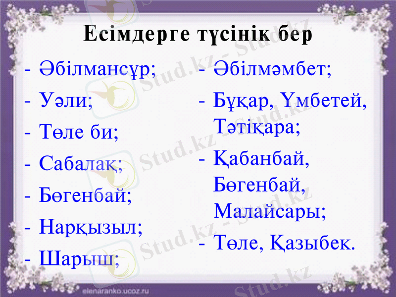 - Үй тапсырмасын қайталау. (слайд арқылы)