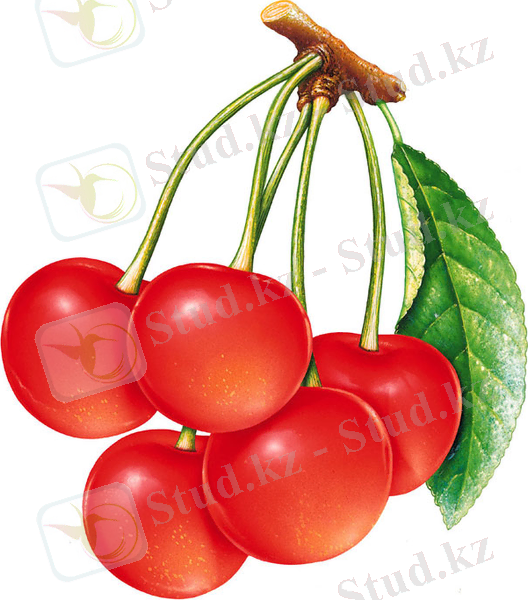 Алма, апельсин, банан, шие, құлпынай, құрма, алмұрт.