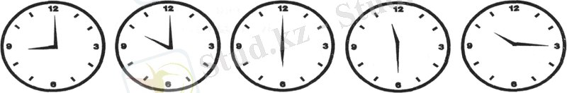 А) Сағат тілдері жасайтын бұрыштардың түрлері қандай, олар неге тең?