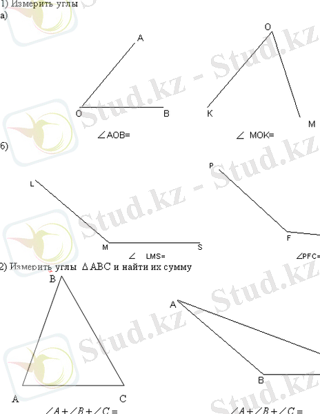 - Бұрыштарды өлшеу машықтарын қалыптастыру.