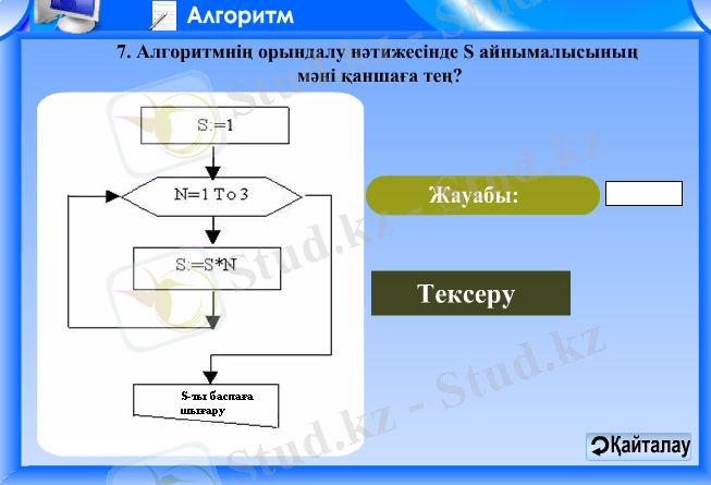 Төменде қайталау командасы алгоритмдік тілде және графиктік түрде берілген.