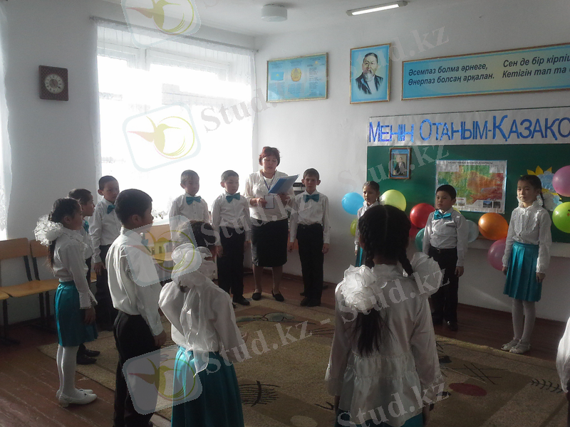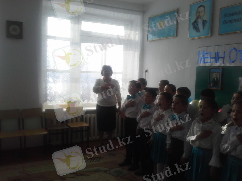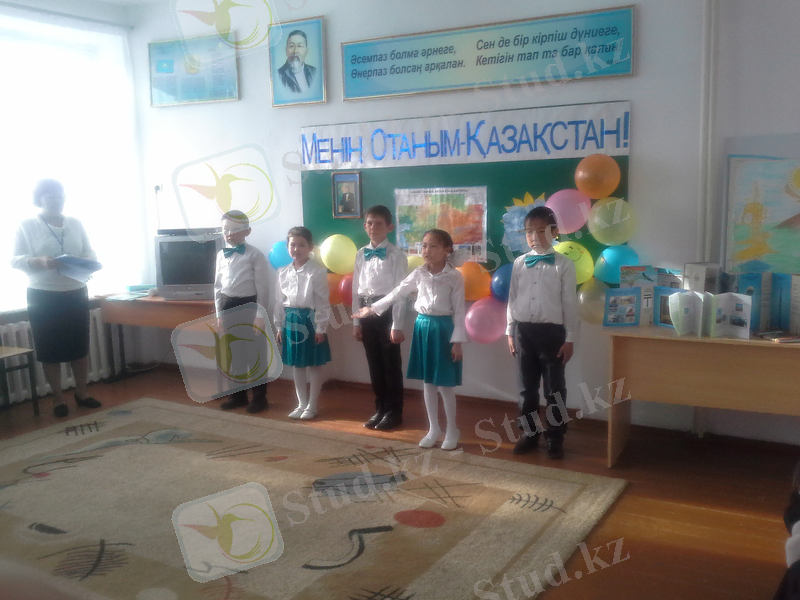 Мұғалім: Біздің Отанымыз-Қазақстан. Мемлекетіміз тәуелсіздік алғалы Қазақстан Республикасының жетістіктері өсуде. Осынау жылдарда елдігімізді танытып, еңсемізді көтерген қаншама ұлы оқиғалар бар. Қазақстан Республикасы 1991 жылы16 желтоқсанда өзінің тәуелсіздігін жариялап, дербес мемлекет болды. Осы өткен жолдарымызға қарасаақ, әр жылдың өз шежіресі, сыры, тарихы, қасиеті бар. Қазақстанды мекендеген барлық халықтардың ұлттық мәдинетін көркейтіп, бірлігі мен ынтымағын жарастырып отырған ұлы елміз. Осыған орай «Менің Отаным-Қазақстан!» атты тәрбие сағатымызды бастаймыз.
