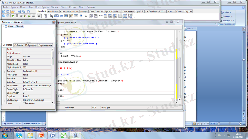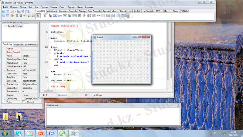 Lazarus - ты іске қосқанда экранда Lazarus IDE v1. 0. 12 project1 жобасының менеджері өзінің Form1терезесімен пайда болады.