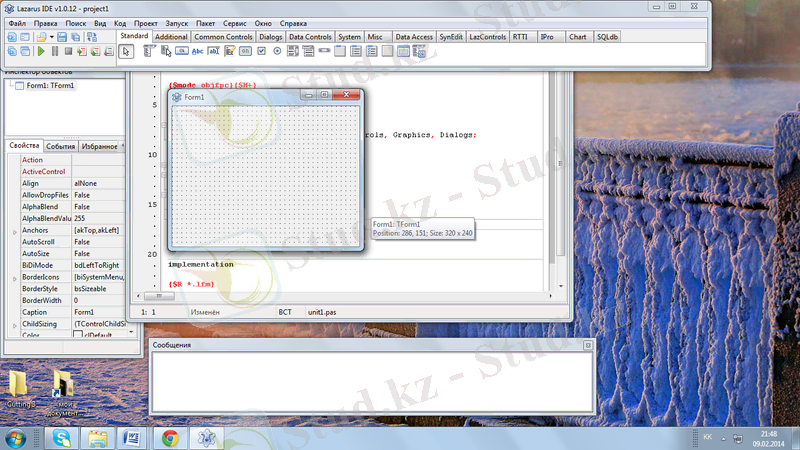 Пішін жобалаушы ( 4-сурет) - Lazarus бірінші жұмысқа кіріскеннен автоматты түрде Form 1 атты бос терезені аша отырып, қолданушыға жаңа жоба ұсынады. Оған палитра компоненттерінің элементтерін көшіру арқылы көркемдей аламыз.
