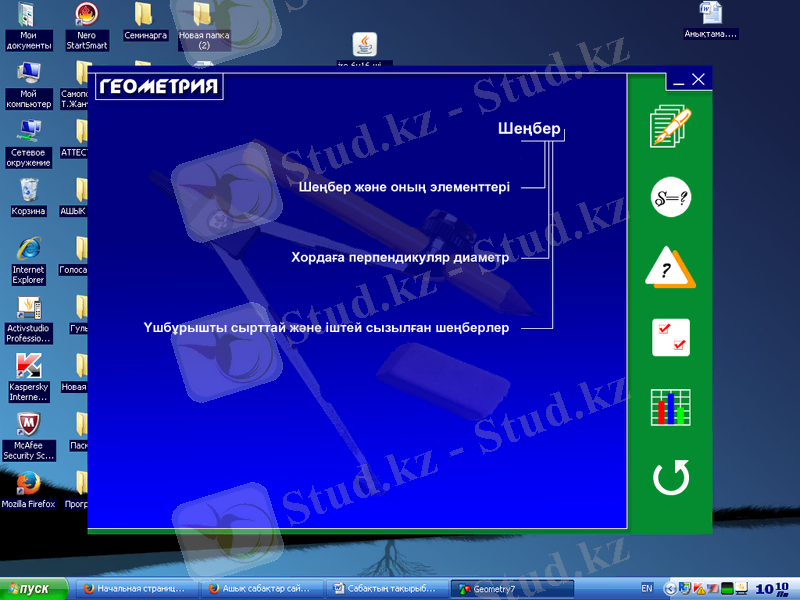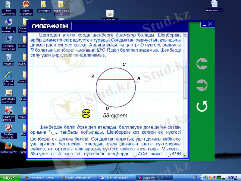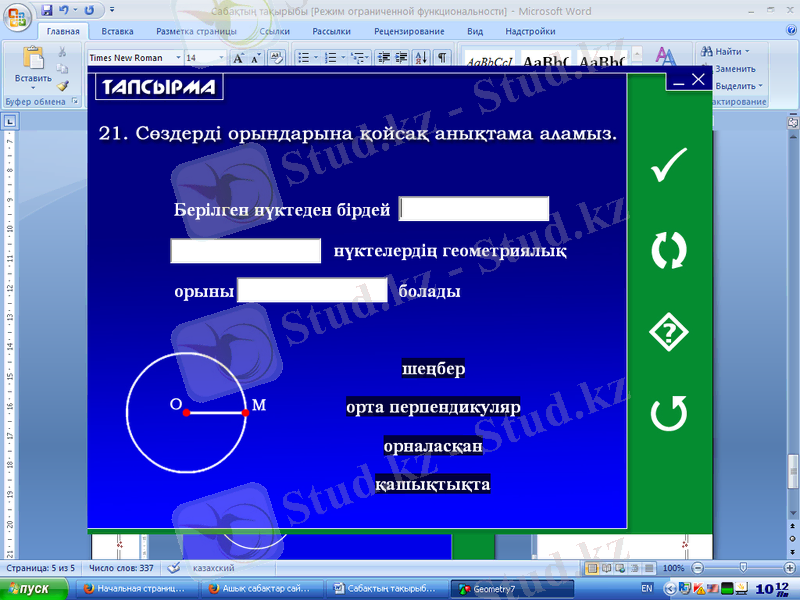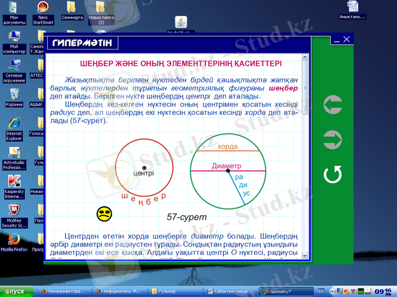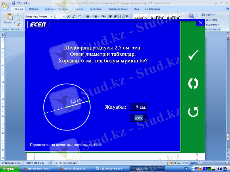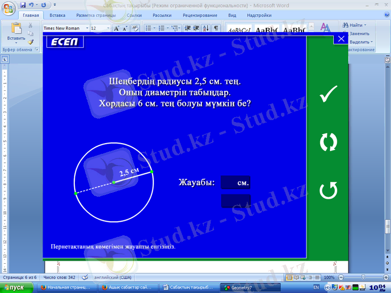 - Электрондық оқулықпен жұмыс. Шеңбер тақырыбына берілген есептерді шешу.