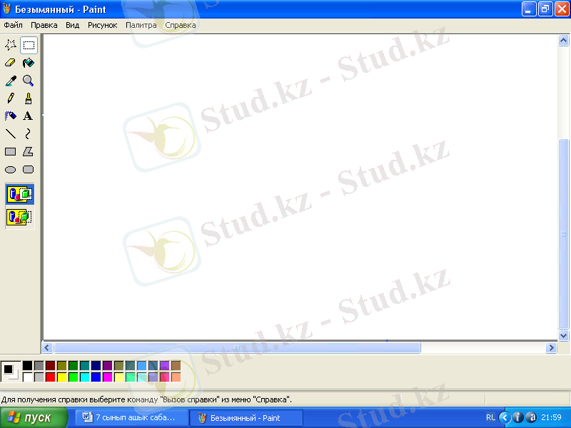 PAINT графикалық редакторын іске қосу үшін: БАСТАУ→ БАРЛЫҚ БАҒДАРЛАМАЛАР →СТАНДАРТТЫ→ PAINT (ПУСК →ВСЕ ПРОГРАММЫ →СТАНТАРТНЫЕ→ PAINT) әрекеттерін орындаймыз. Сол кезде бізге PAINT графикалық редакторының терезесі ашылады.