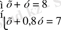 Осы теңдеулер жүйесін шешу үшін (1) теңдеуден (2) теңдеуді аламыз : 0, 2у = 1, у = 5 . Ал х - тің мәнін (1) теңдеуден табамыз: х + у = 8, х = 8 - у, х = 8 - 5 = 3 . Демек, 8 кг қорытпа алу үшін бірге қорытылатын кесектердің салмағы 3 кг және 5 кг .