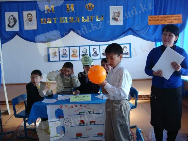 Көрнекілігі: Ғалымдар портреті, формула жазылған плакаттар, шарлар, т. б.