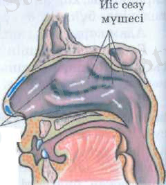 Иіс сезу мүшесі. Адам үшін иіс маңызды рөл аткарады. Ол тұрмыстық газдың шығып жатқанын, ашып кеткен тамақ туралы хабар береді, Мұрын қуысының үстінгі мұрын қалқанында иіс сезу мүшесі орналасқан. Бұл - пішіні түйреуіш тәрізді және кірпікшелері бар иіс сезу рецепторларының шоғыры (жиналуы) .