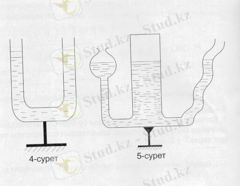- Қатынас ыдыстарға су құйылған. Сол жақтағы ыдысқа аздап су құйсақ