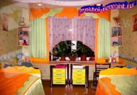 Бір бұрышта кереует (стоит) . (гүлдер)