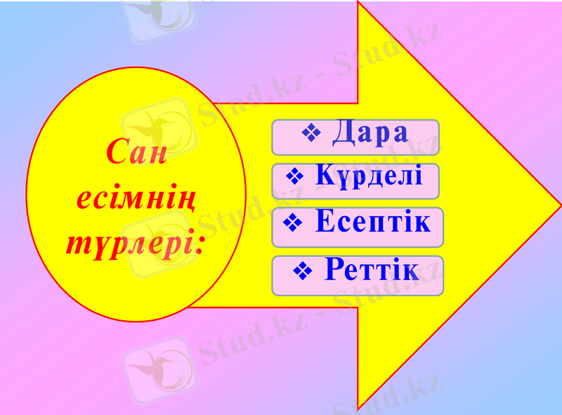 Енді біз 3 сыныпта өткен Сан есімнің түрлерін еске түсірейікші
