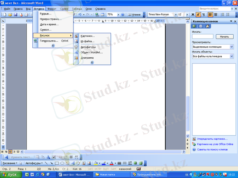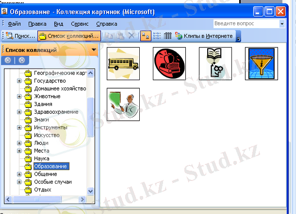 1. Мәтінге Clip Gallery программасының обьектілерін енгізу