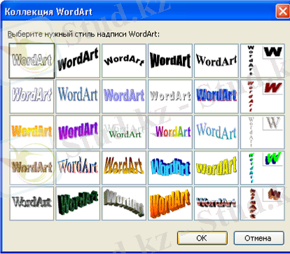 « WordArt объектісінің жиынтық» терезесі