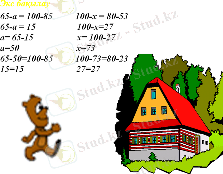-Енді балалар сендердің осы сабақта қандай білім алдыңдар, соны байқау үшін қазір біз экс бақылау арқылы тексереміз. Егер осы есепті шығарсақ, аю үйіне жетеді. 14-15 слайд Балаларға берілетін уақыт 5-мин