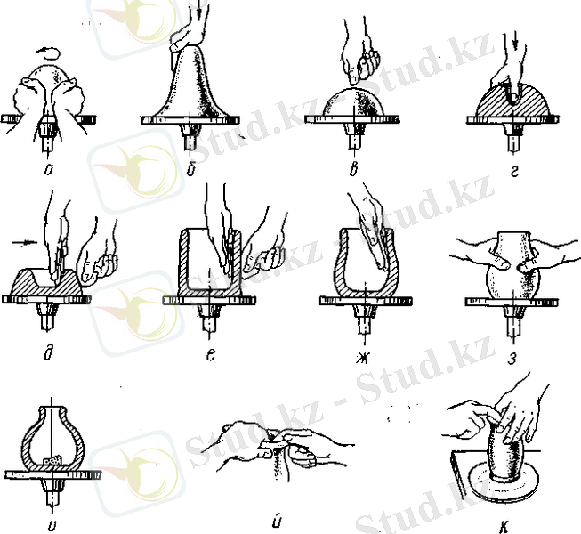 ЫДысты жасау жолдары. Айналып тұратын ұршықша ыдысты нақты бір пішінге келтіріп шығарады. слайд № 5