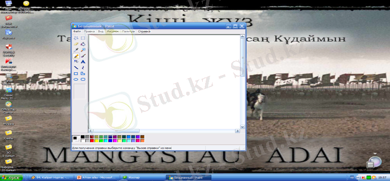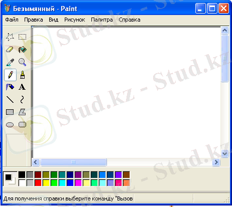 (Пуск-Все программы-Стандартные- PAINT ) Командалар орындалғаннан кейін, экранға PAINT графикалық редакторының терезесі шығады.