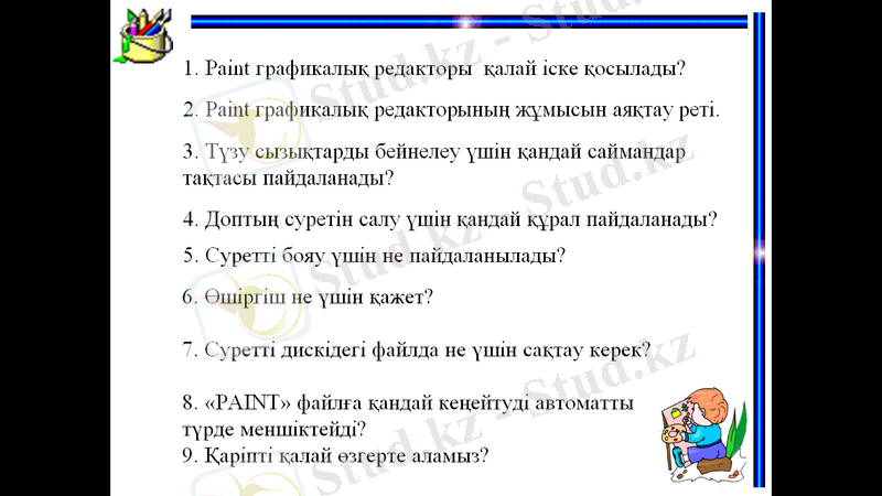 Оқушыларға Paint графикалық редакторы жайлы жалпы мағлұмат беру және