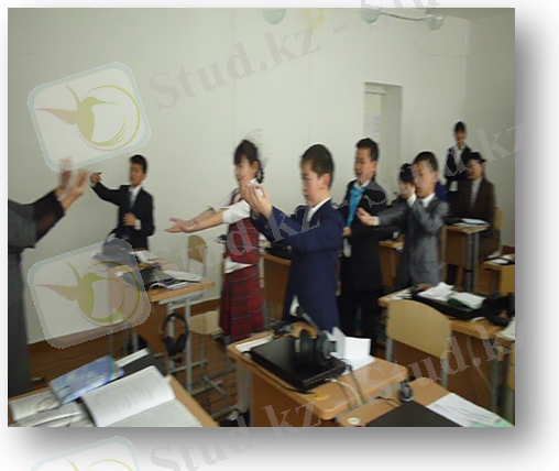 Бәрі шеңберге тұрады. Үнтаспаға қосылып ән шырқайды. «Біздің тілек»