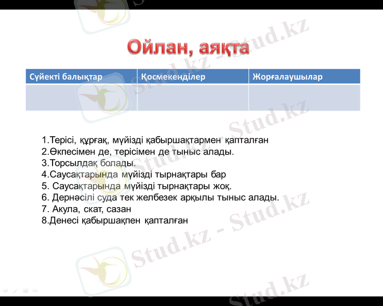 - Жорғалаушылар-құрлықта тіршілік ететін алғашқы омыртқалы жануарлар