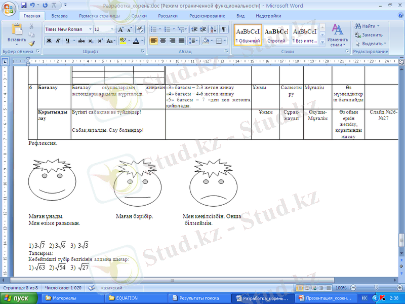 Сабақтың көрнекілігі: 1. Презентация-слайд 2. Жетондар 3. Үлестірмелі материалдар