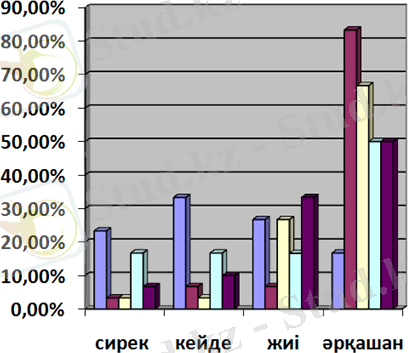 « Сіздің білім алу үдерісінде техникалық кедергілер бар ма?» деген сауалға 6 оқушы-сирек (20%), 15 оқушы-кейде (50%), 7 оқушы жиі (23, 3%), 2 оқушы-әрқашан (6, 7%) деп, « Сіздің білім алу үдерісінде рухани тұрғыдағы қиындықтар кездеседі ме?» дегенге 12 оқушы-сирек (40%), 10 оқушы-кейде (33, 3%), 6 оқушы-жиі (20%), 2 оқушы -әрқашан (6, 7%) деп жауап берді. Осы орайда мен мектеп психологы мен әлеуметтік педагогпен пікірлесіп, осы кластағы рухани қолдауды қажет ететін балаларға қандай көмек көрсетуге болатындығын ақылдастым. «Сіз жаратылыстану пәндерін ұнатасыз ба?» деген сауалға 1 оқушы-сирек (3, 3%), 2 оқушы-кейде (6, 7%), 2 оқушы-жиі (6, 7%), 25 оқушы-әрқашан (83, 3%) деп жауап берді. Мектепте жыл сайын оқушы қажеттілігін анықтау барысында сауалнамалар жүргізіп тұрамыз. Сонда байқағаным біздің мектеп оқушыларының көпшілігінің жаратылыстану пәндеріне қызығушылықтары басым екен. Оған дәлел биылғы мектеп бітірушілердің 11-і медицина мамандығын, қалғандары техникалық мамандықтарды таңдады. Оны төмендегі гистограммадан көруге болады. (5-сурет)