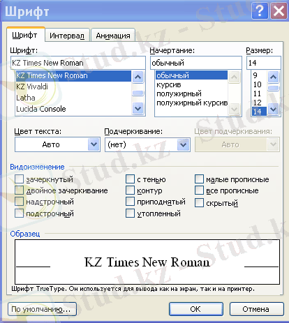Пішімдеудің бірнеше баптауын бірден өзгерту үшін Формат - Шрифт командасын орындау керек. Экранда одан қажетті праметрлерді таңдауға болатын Шрифт диалогтік терезесі пайда болады: