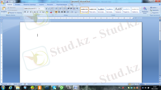 Мәтіндік процессорды іске қосқан кезде экранда 1-суреттегідей терезе пайда болады.