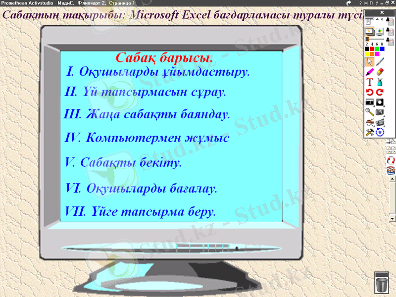 - Компьютермен жұмыс жасау. (Тапсырмаларды орындау) .