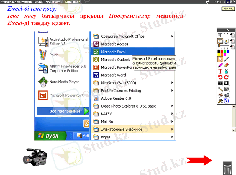 Іске қосу батырмасы арқылы Программалар менюінен Excel -ді таңдау қажет.