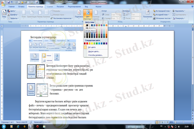 беттердің түстерін өзгертуге де болады ол үшін разметка страницы дан цвет страницаны тандап керекті түсті басып