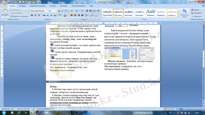 Берілген мәтінді теріңдер және оны үш дана көшіріп баспаға екі дана қылып жібер