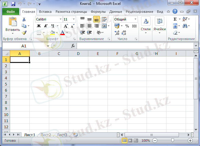 MS Excel-дің қосылуы бірнеше әдістермен жүзеге асады. MS Excel қосылғаннан соң MS Excel терезесі ашылады (1 сурет) . Бас мәзірде негізінен, басқа да MS Office программаларындағы бөлімдерден құрылған. (1 сурет)
