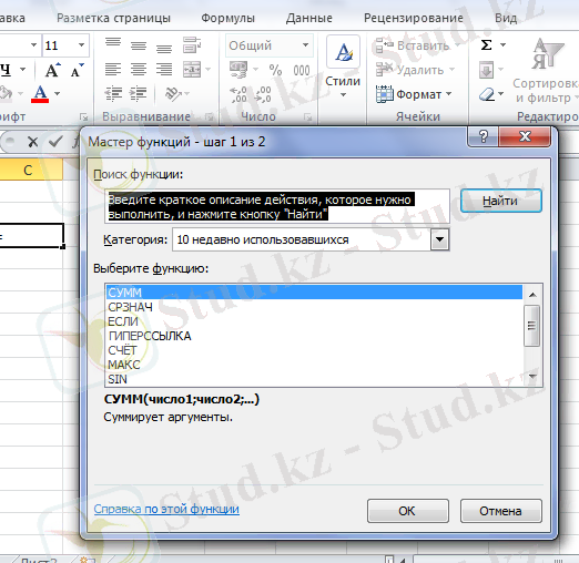 батырмасын шертсеңіз, экранда (4 сурет) Функция шебері (Мастер функций) сұхбат терезесі көрінеді.