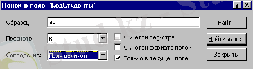- Үлгi өрiсiне - С, просмотр -все, совпадение - с начало поля.