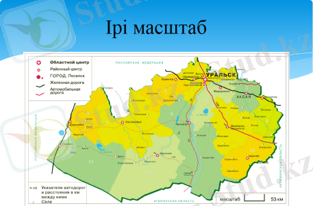 Масштаб - белгілі бір территорияны картаға түсірген кезде алымы бірліктен, ал бөлімі неше есе кішірейтілгендігін көрсететін сандық бөлшек.