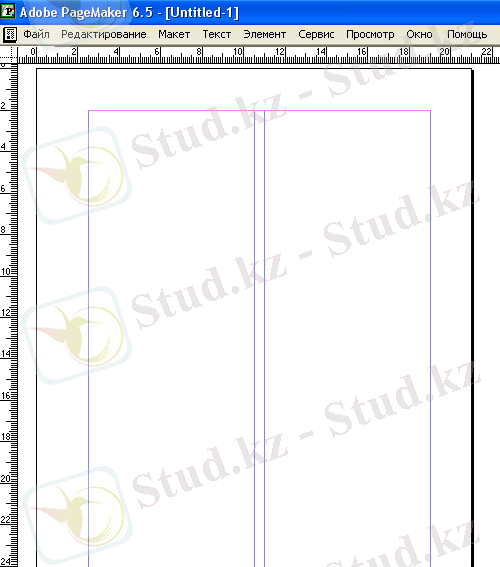 - «Макет/Границы колонок»командасын орындандар және бағандар саны - 2, бағандар арасындағы қашықтық - 5мм. енгізіндер. Операцияны «Да» батырмасын шертіп аяқтаңдар. Бетте екі көк бағыттаушымен - бағандар шекарасымен бөлінген екі баған пайда болады. Бағандардың ені бірдей.
