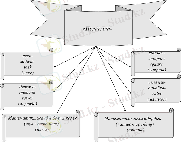Студенттердің алдындағы парағына жауабын үш тілде жазады, егерде 3-еуі дұрыс болса - 30 ұпай, 2-еуі дұрыс болса - 20 ұпай, 1-еуі дұрыс болса - 10 ұпай.